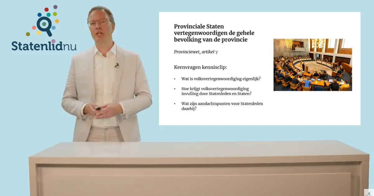 Wilt u uw rol als volksvertegenwoordiger bewuster invullen én steviger staan in participatie- en stakeholderprocessen? Bekijk dan de twee kennisclips in de Statenlidnu Academie, onderdeel van de module Slim inzetten van rollen en instrumenten.